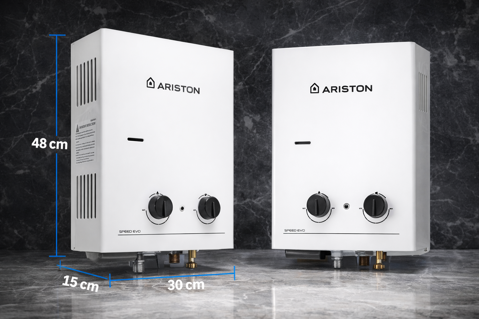 سخان غاز أريستون سبيد ايفو 6 لتر بدون مدخنة – تشغيل أوتوماتيك وتصميم مدمج